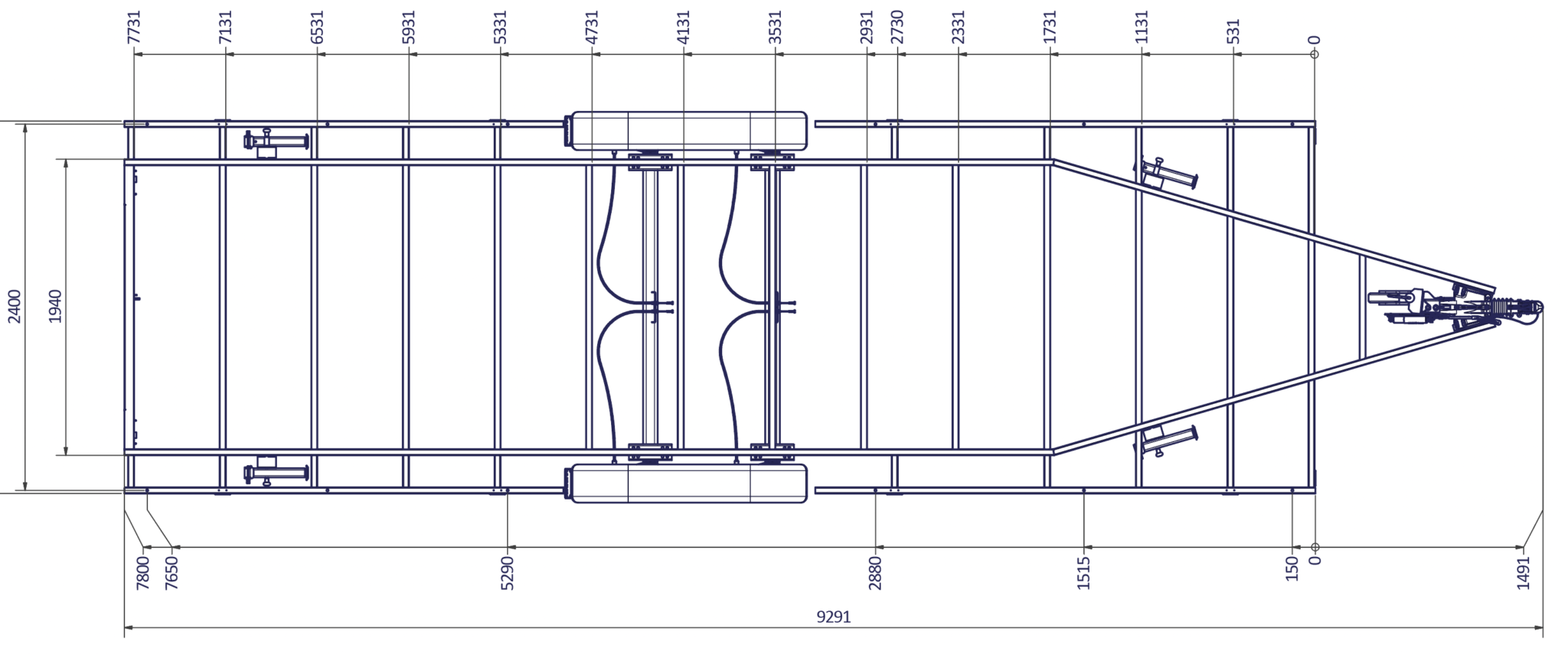 La ubicación estándar de los ejes es en el centro y a 20 centímetros hacia atrás. La ubicación de los ejes también puede ajustarse a los deseos del cliente.