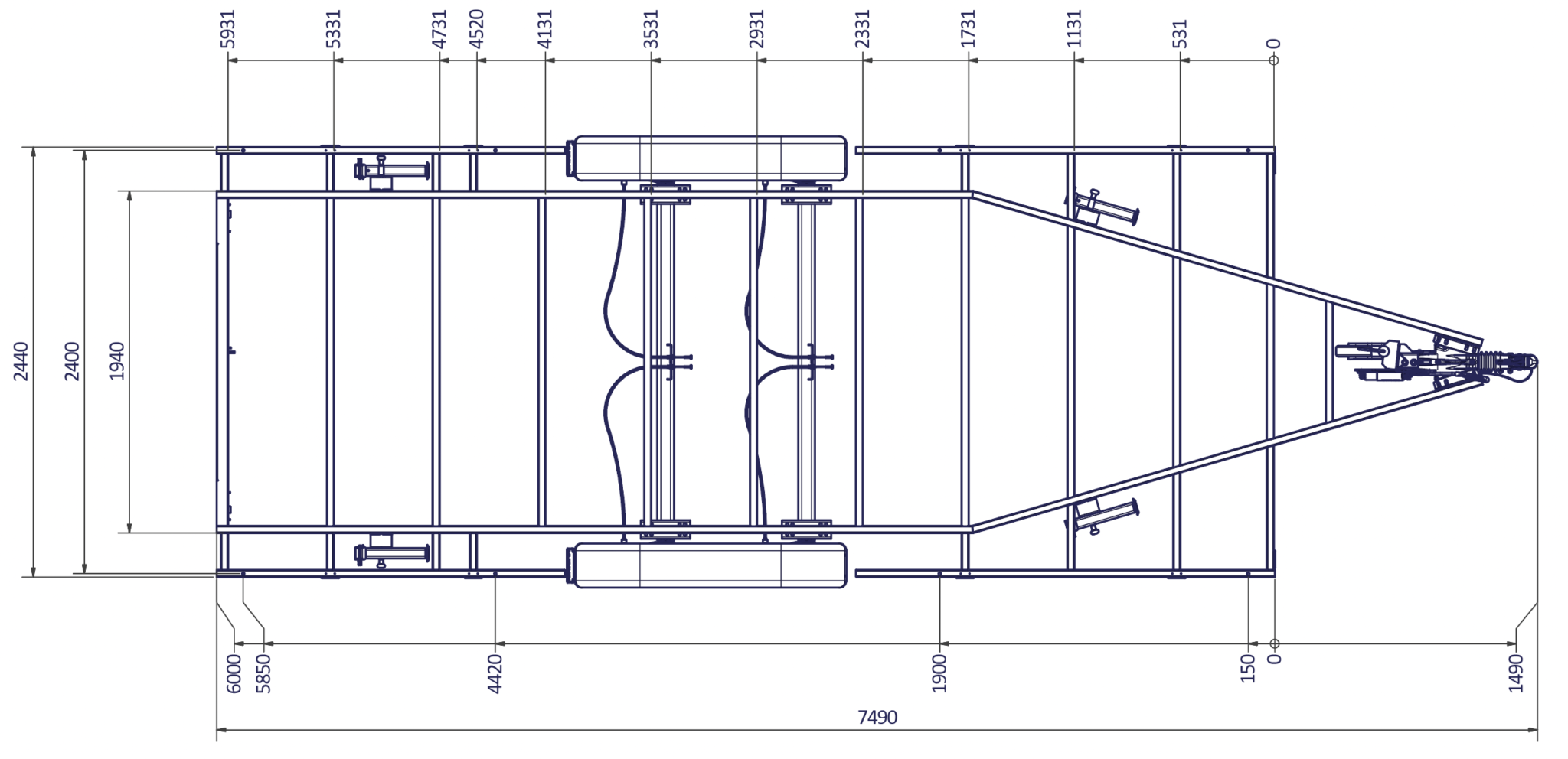 La ubicación estándar de los ejes es en el centro y a 20 centímetros hacia atrás. La ubicación de los ejes también puede ajustarse a los deseos del cliente.