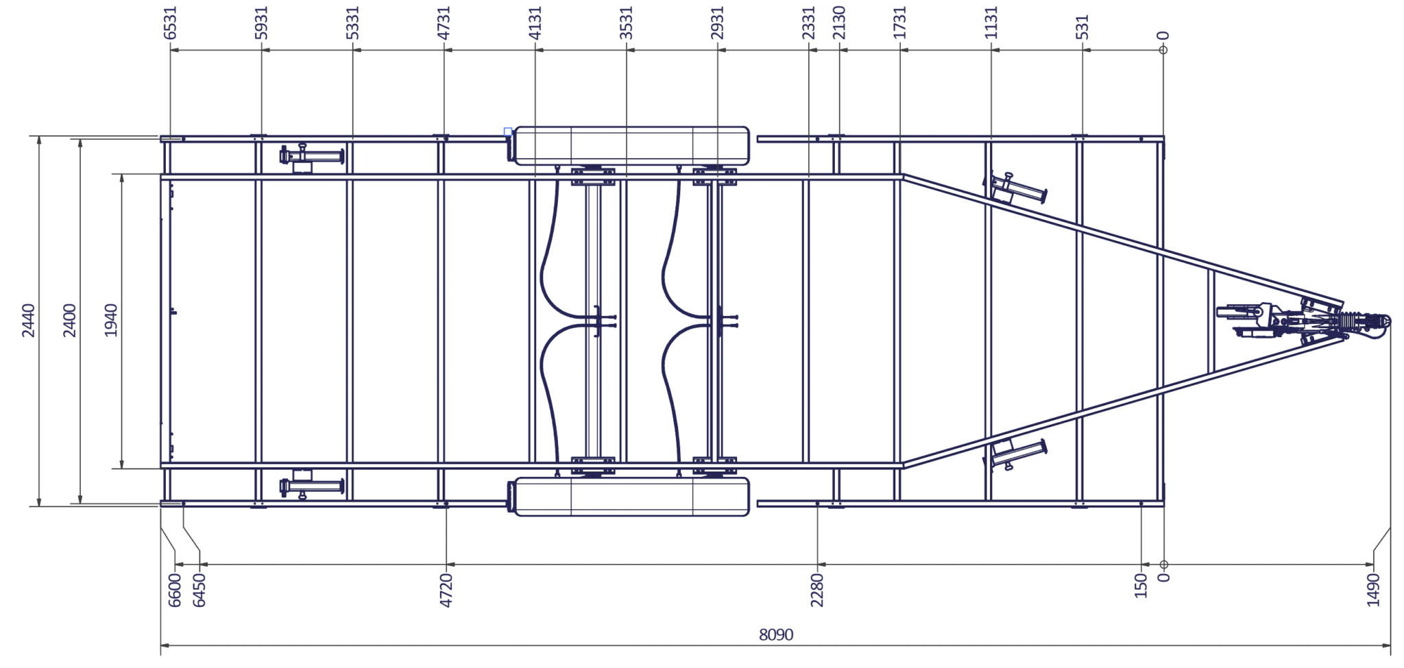 La ubicación estándar de los ejes es en el centro y a 20 centímetros hacia atrás. La ubicación de los ejes también puede ajustarse a los deseos del cliente.
