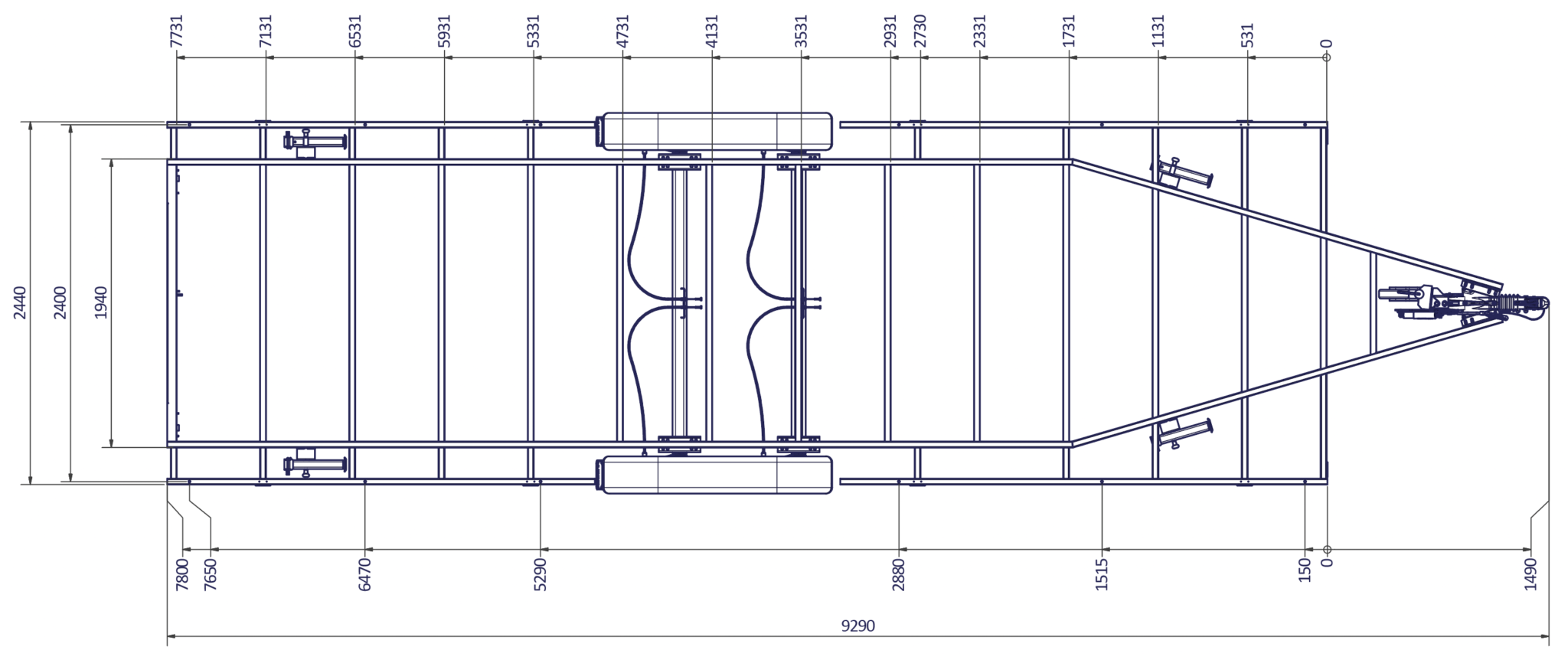 La ubicación estándar de los ejes es en el centro y a 20 centímetros hacia atrás. La ubicación de los ejes también puede ajustarse a los deseos del cliente.